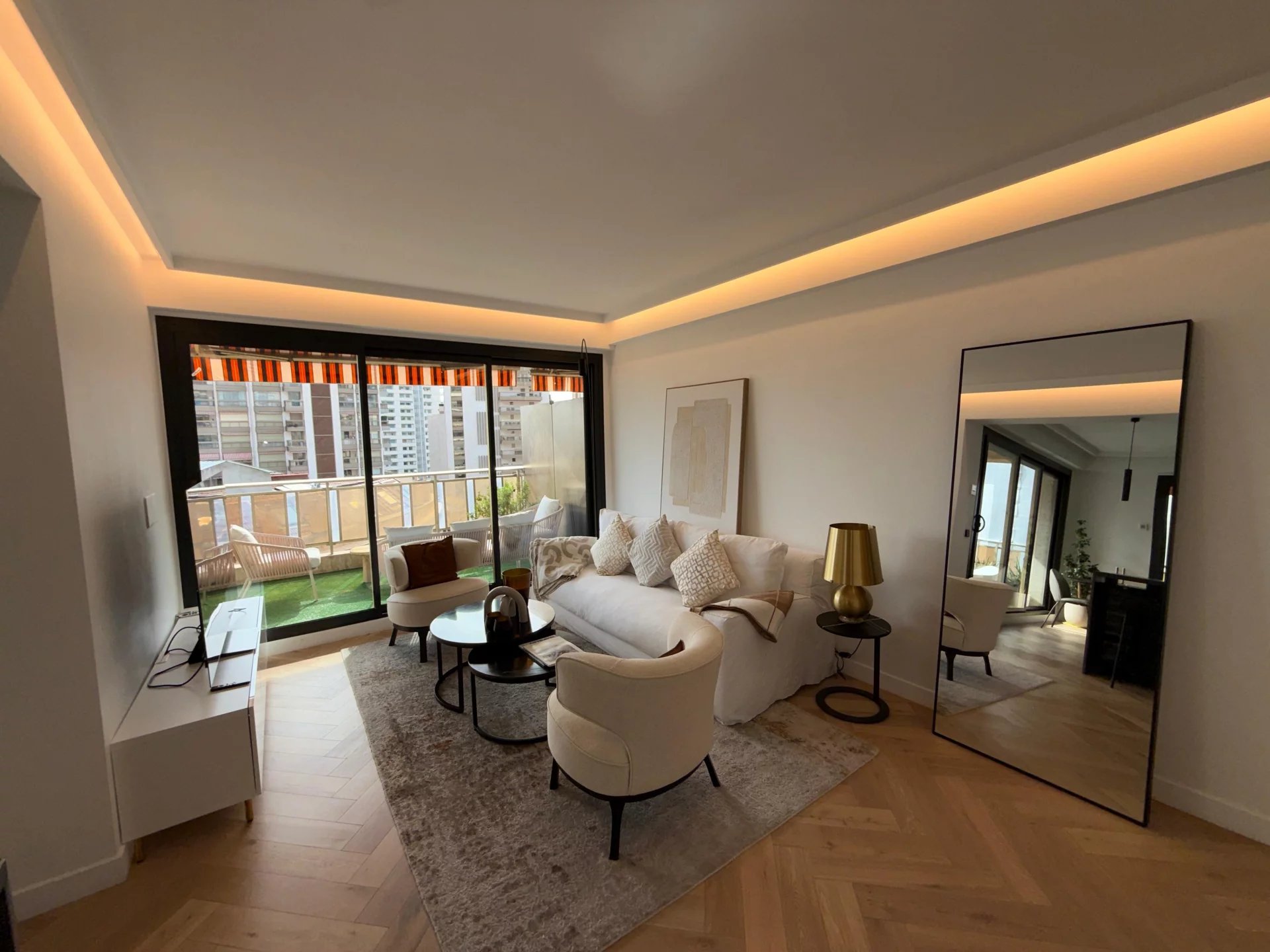 This elegant apartment in the heart of Monte Carlo, Monaco, offers 100 m² of refined living space. With three well-appointed rooms, you'll enjoy a modern, comfortable ambience. Large bay windows bathe each room in natural light, creating a warm and welcoming atmosphere.